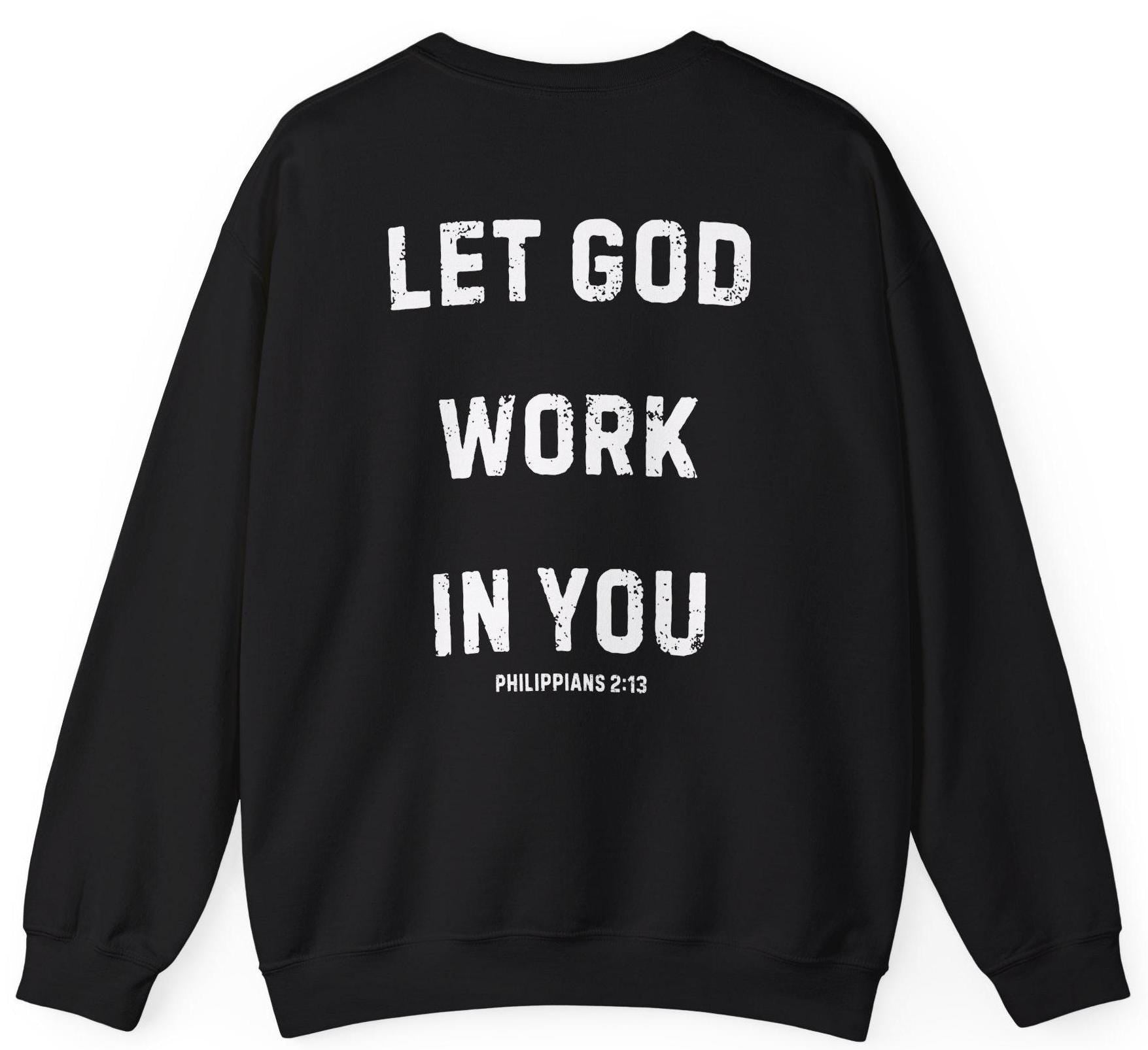 Let God work in YOU! It's not just a reminder for you but also for the ones standing behind you. Elevate your comfort and style with this unisex heavy blend crewneck sweatshirt. The simple yet powerful message, ‘Let God Work,’ radiates positivity and purpose, making it the perfect wardrobe staple for those who appreciate faith-inspired apparel. Ideal for cozy evenings, casual outings, or relaxed weekends, this sweatshirt can seamlessly fit into anyone's daily life. Whether you’re looking to inspire yourself or others, it's especially relevant for spiritual gatherings, church events, or as a thoughtful gift during holidays such as Easter and Christmas. Designed for adults, it pairs beautifully with jeans, leggings, or lounge pants, ensuring you stay stylish while conveying a meaningful message.